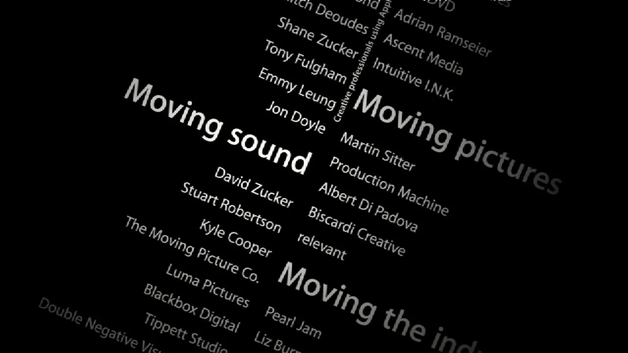 From early 2002 to mid 2006 I was the Motion Graphics Technical Director on the Graphic Design team. This covered nearly all things moving pictures, except the television commercials. Keynote presentations, retail store product videos, retail window animations, the Genius Bar and concierge system, product animations for the web, welcome to your new mac animation, and professional tools demo reels. I designed the delivery pipeline and project workflow for the motion graphics content creation. The schedules were, at times, rather grueling and 60+ hour work weeks were not out of the question.