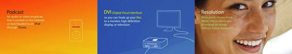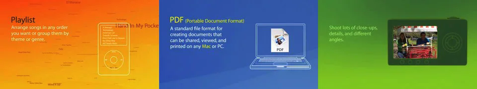 The very first project I did for Apple was when I worked for the agency MarchFirst. This was the animated logo for QuickTime 5 which shipped in October of 2000 inside of the first version of OSX. One of the biggest additions to this release was the Sorenson 3 codec. It is rumored that h.264 was tweaked to make Sorenson files as small as they were. The final shipping animation was 190x240 and a whopping 55kb, well below the target 80kb. Thinking well ahead of the standard definition days the animation was created at film resolution to support future high res needs which came in handy a couple years later when an HD version was requested.