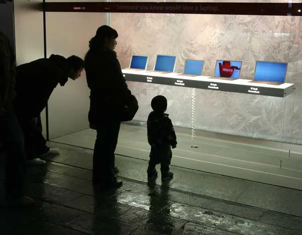 Seasonally the animations throughout the Apple Retail Store change. From Back-to-School, to product launches, to the Holiday shopping season. I've lost count at the number of animations I worked on or lead between 2002 and 2006 but the most challenging, innovative and fun was the Holiday 2003 window.