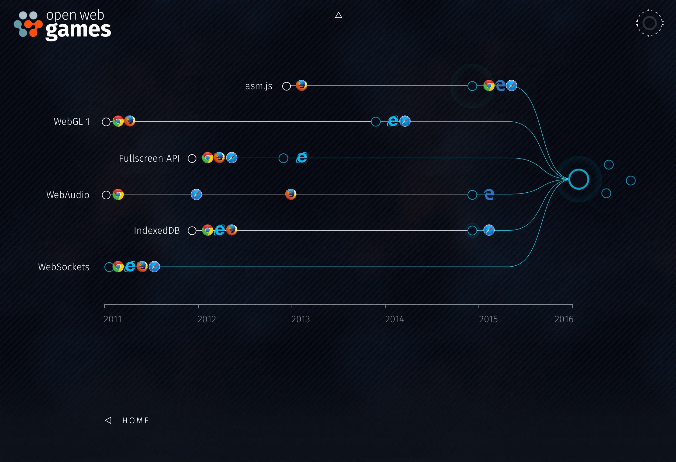 The Web is Changing the Game. Is your browser ready to play? The next generation of games are being developed today. The use of web technologies is allowing more studios and developers to engage directly with their audiences. Mozilla has been working with other browser vendors to standardize the technologies that are turning browsers into the "new console." www.openwebgames.com was developed working with Bonfire Red and S77 to showcase and highlight what's possible, how current browsers stack up and to provide a standardized test suite.