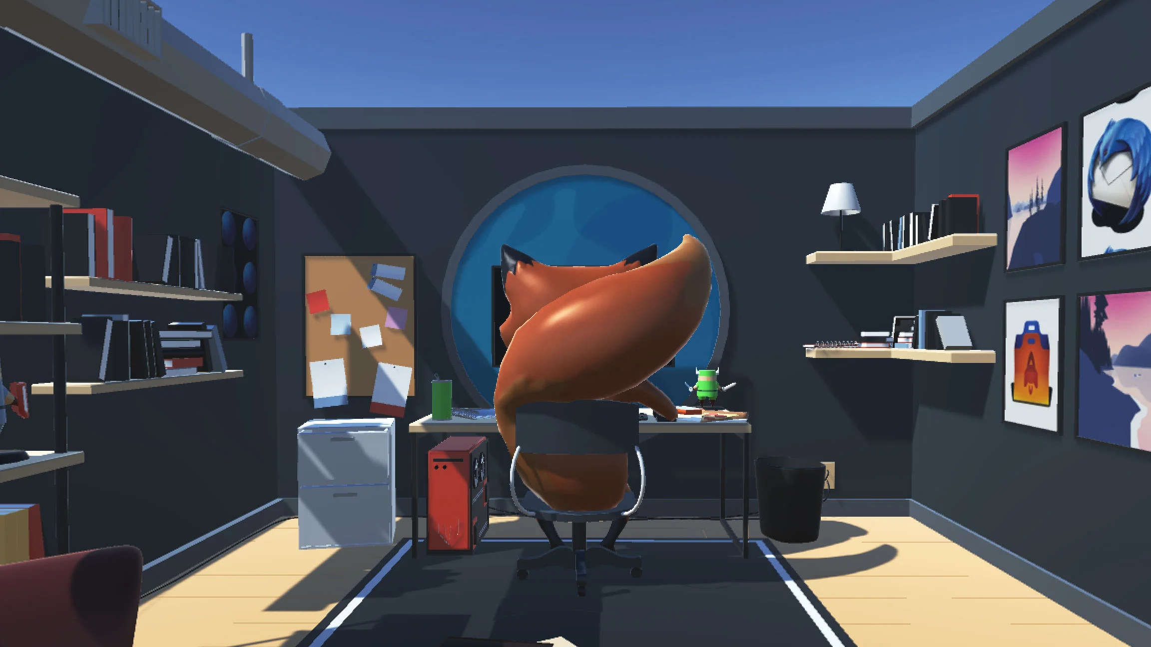 One of the biggest cultural components to Mozilla, and most tech companies for that matter, is T-Shirts. They are worn as badges of honor, representative of the time and place, and as a symbol of "I was there when..." Most shirts have a logo, some text, a date or two, and maybe an inside joke. For the Unite Conference in Boston I wanted to create something with more substance and in this case an Easter egg of sorts. Unity's technology brings 3D and 2D experiences to life in their game development platform, so it seemed fitting to develop the artwork in 3D. Working with Scott Ulliman and S77 the concept was realized perfectly. The Firefox takes a break from protecting The Web for a some game time.