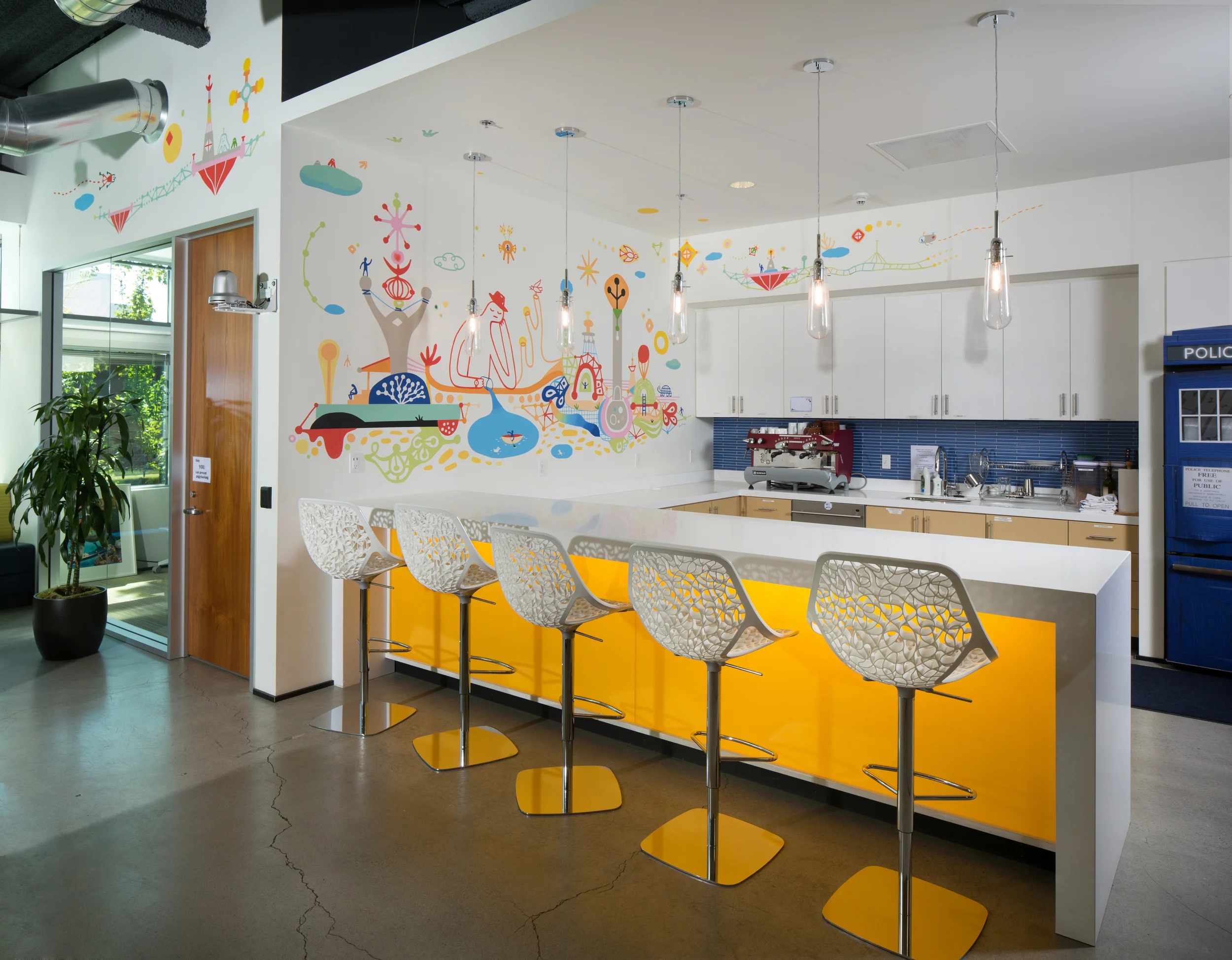 Collaborations with Juxtopoz Magazine started in 2014 to beautify the Mozilla spaces. Each mural is part of a larger collaboration challenging different artists to produce an original design concept for each Mozilla Space, applying their own interpretation and creative execution style. As the project continues each Mozilla Space will have a unique mural as part of a collection of murals that together capture slices of Mozilla and inspire those who work in and visit the Spaces.